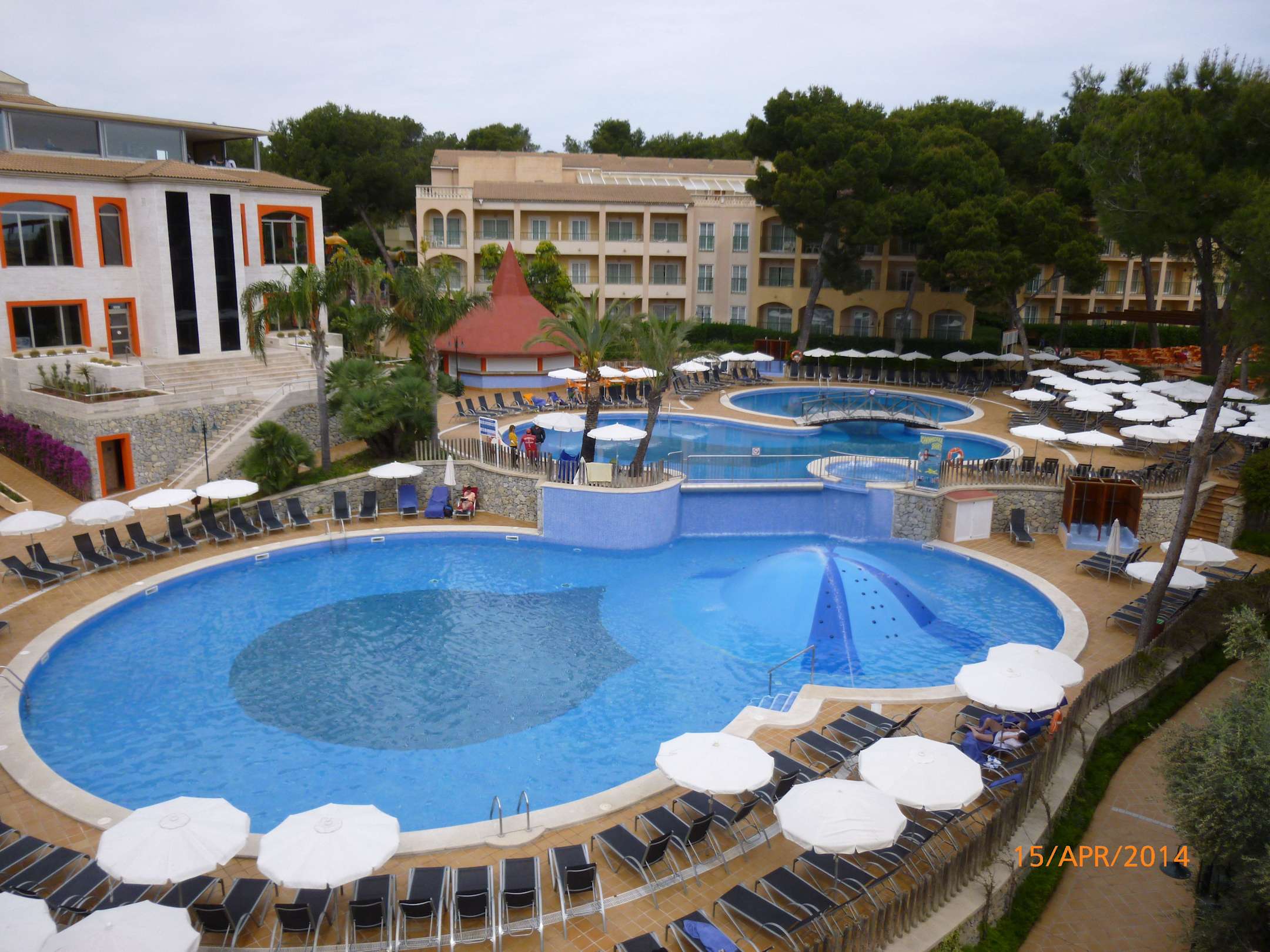 Von der Dachterrasse nach links der Pool