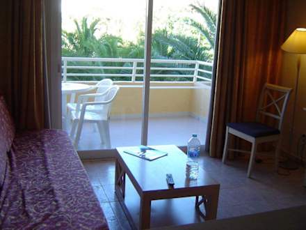 Wohnzimmer mit Blick auf den BalkonBlick aus dem Fenster vom Zimmer 3116