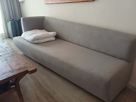 Couch im Wohnraum. Sie ist sehr kippelig.