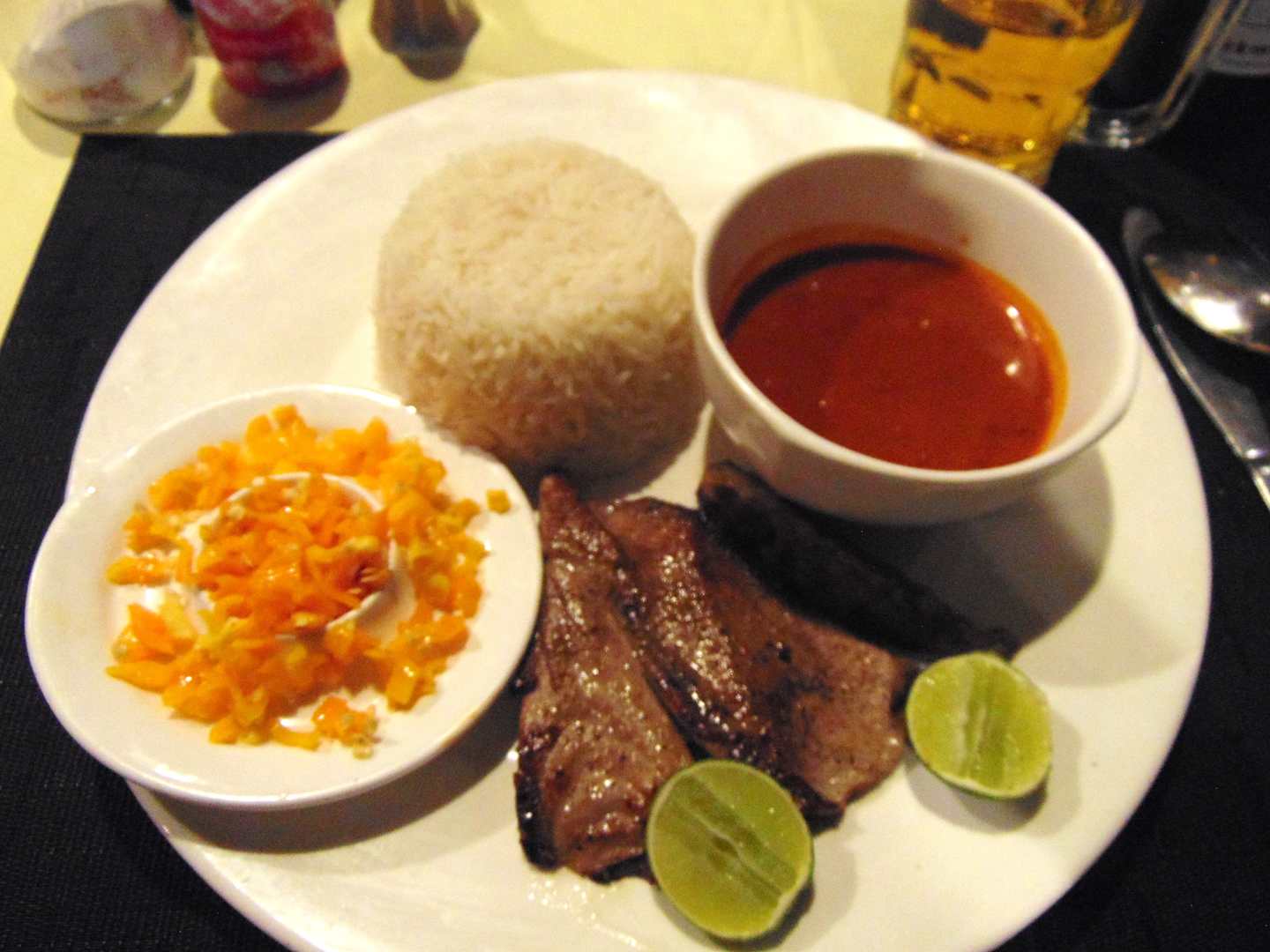 Gegrillter Thunfisch mit Kokosnuss-Sauce und Reis. Verfeinert mit Piri-Piri.