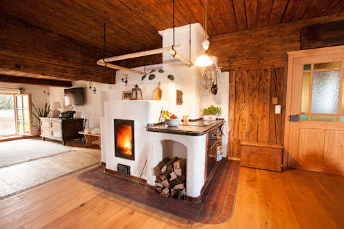 Kamin im Wohnraum der Hube