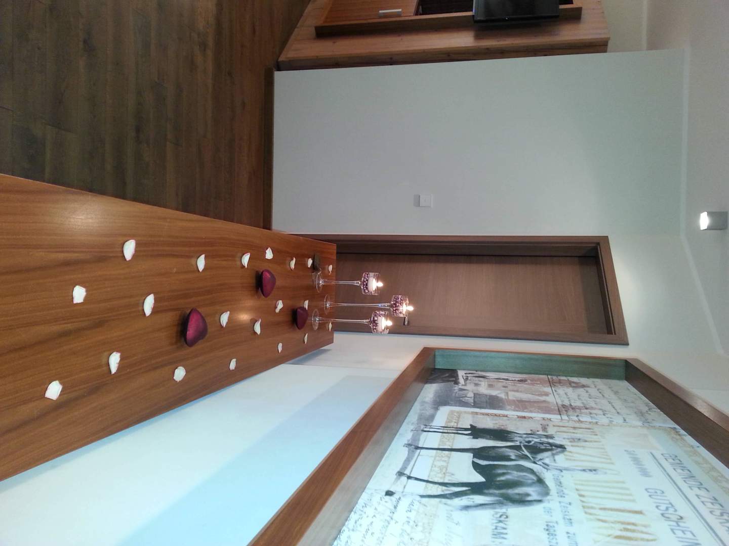 Dekoration mit Rosenblüten und Kerzen