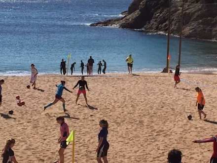 Im Hintergrund die Triathleten, vorn Beach Soccer
