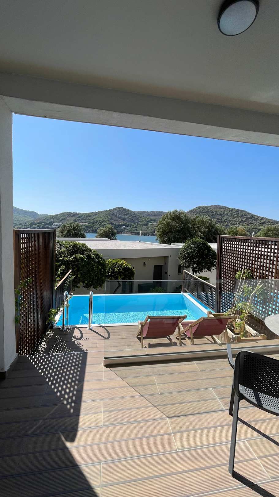Zimmer (außen) Terrasse und Pool