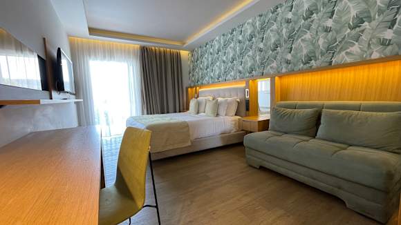 Zimmer (innen) mit Terrasse und Pool