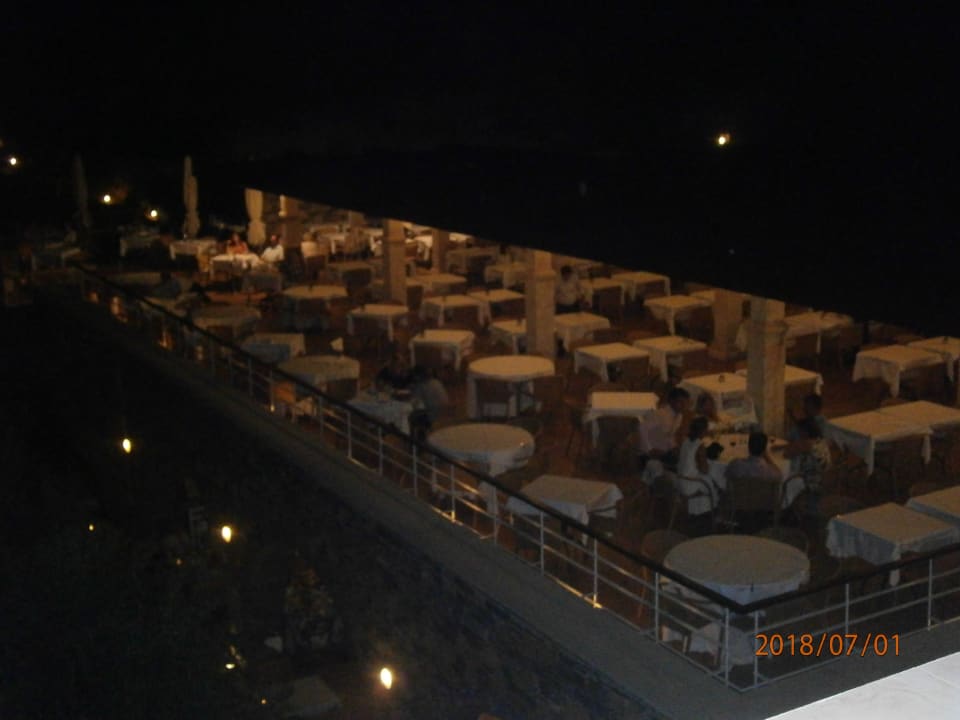 Der Restaurantausenbereich bei Nacht.