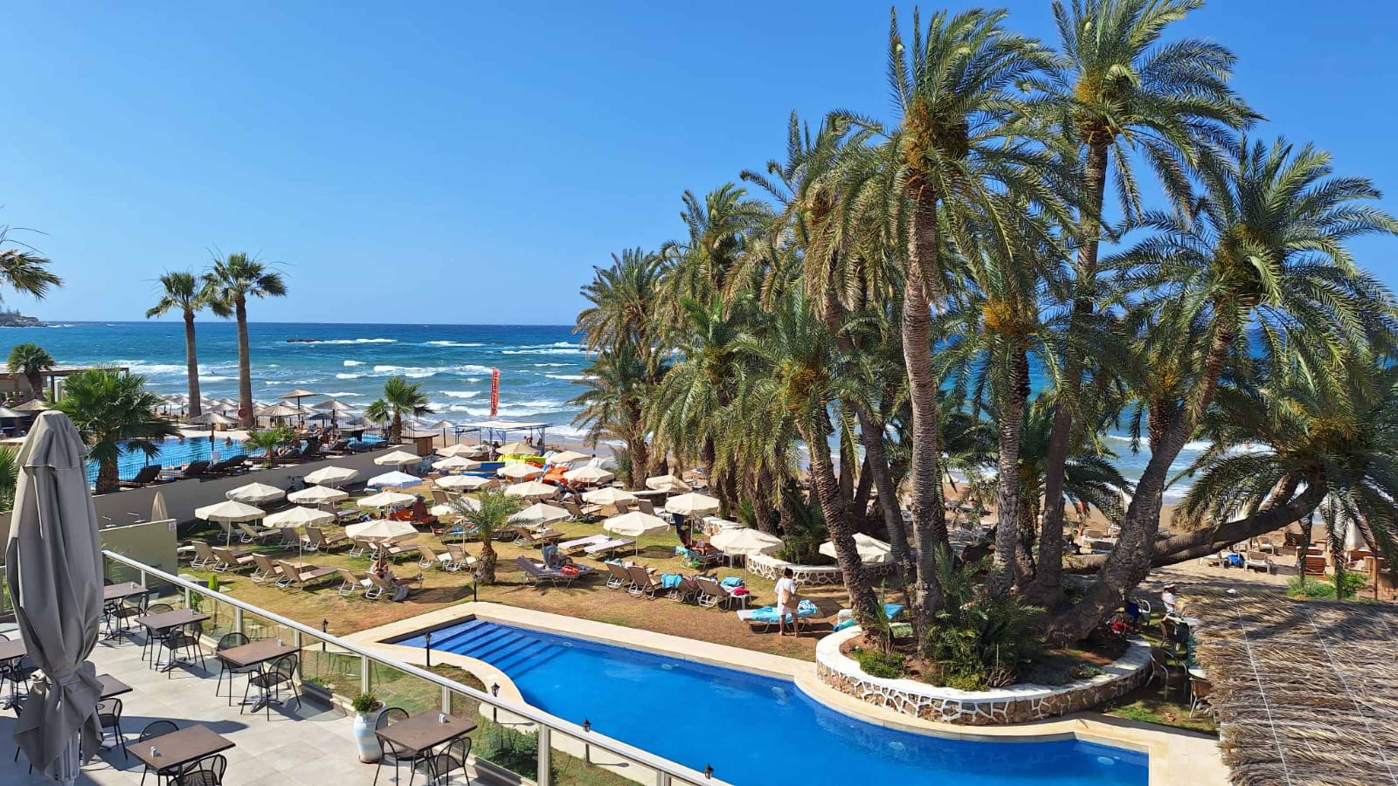 Blick vom Zimmerbalkon. Direkte Strandlage.