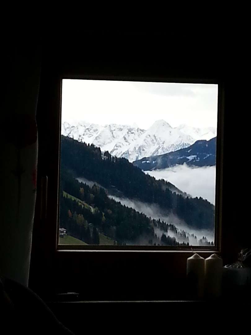 Ausblick am Morgen aus dem Hüttenfenster