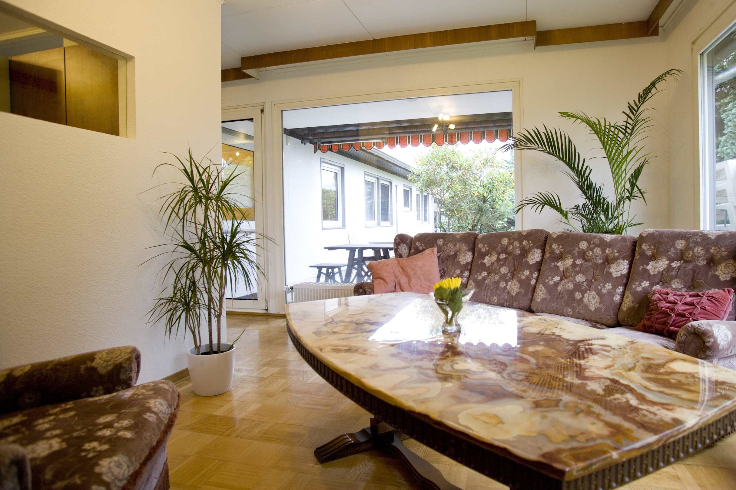 Aufenthaltsraum mit Zugang zur Terrasse mit Grill