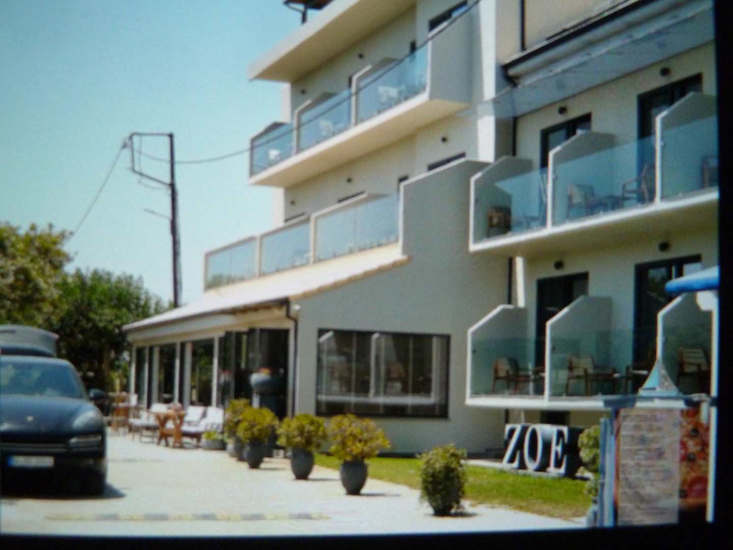 AußenansichtHauptgebaeude, kuerzlich renoviert, mit Rezeption und Bereich fuer Fruehstuecksbuffet im Vorbau