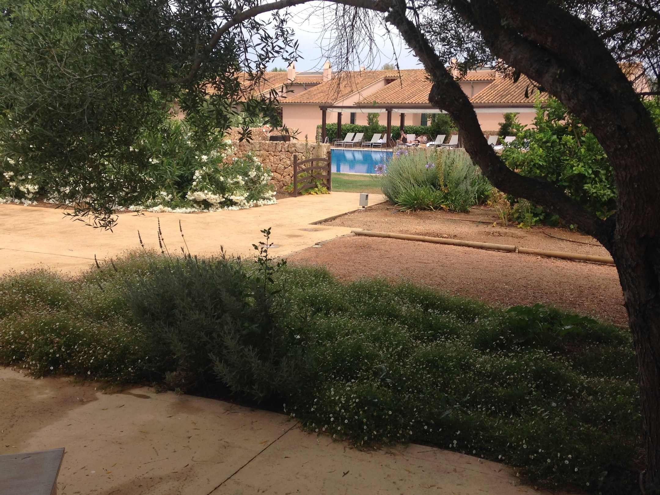 Blick von 'unserer' Terrasse zum Pool