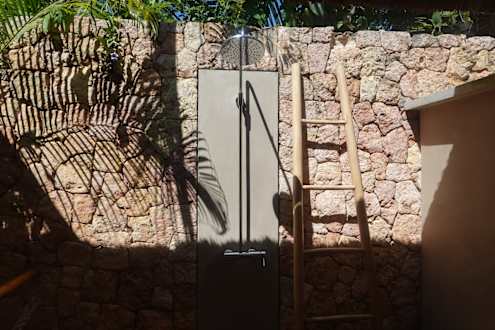 Outdoor Dusche mit Abendbeleuchtung