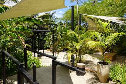 Outdoor Fitnesscenter umgeben von Palmen