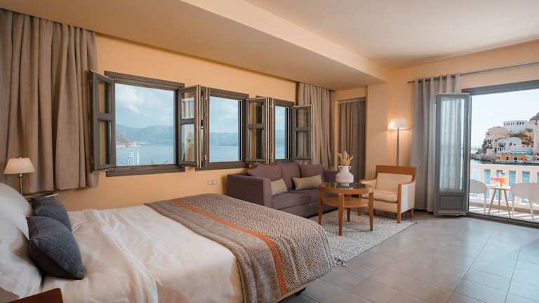 Die Zimmer im Hotel Megisti sind im Einklang mit der Umgebung gestaltet und bieten Komfort und Entspannung. Genießen Sie den Blick auf das Meer oder die umliegenden Berge von Ihrem Zimmer aus. Die Ausstattung umfasst alles, was Sie für einen angenehmen Aufenthalt benötigen.