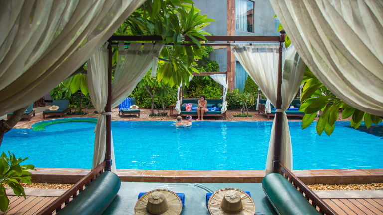 Das Model Angkor Resort bietet geräumige und zeitgenössisch gestaltete Zimmer und Suiten in einer ruhigen und entspannten Umgebung in Siem Reap. Mit zwei Außenpools und Wellness-Einrichtungen bietet das Resort seinen Gästen eine Vielzahl von Möglichkeiten zur Erholung. Das hauseigene Restaurant verwöhnt die Gäste mit köstlichen Mahlzeiten und an der Bar können sie entspannen. WLAN steht kostenlos zur Verfügung. Das Resort befindet sich in der Nähe der lebendigen Pub Street und der beeindruckenden Tempelanlage Angkor Wat.