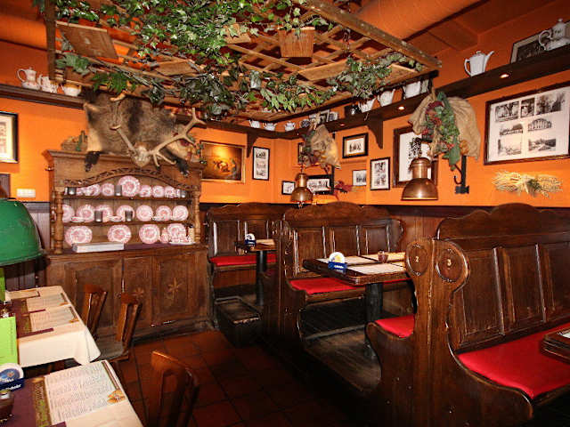 Das seit 1989 bestehende 1. Osnabrücker Kartoffelhaus besteht in der Osnabrücker Altstadt seit 1989. Das Kartoffelhaus wirkt von außen sehr rustikal bürgerlich mit Biergarten, kleine Stuben und verbreitet im Inneren eine urig gemütliche Atmosphäre. Wir taten gut daran, für 18:00 Uhr einen Tisch reservieren zu lassen, denn das Restaurant wurde stark frequentiert. Wir bekamen einen Platz gegenüber der Theke zugewiesen und so konnten wir beobachten, wie flink das Personal die Gäste bediente. Aus der umfangreichen Speisenkarte, die Gerichte mit der „Knolle“ anbot, waren phantasievolle Speisen, die ich den Kartoffeln nicht zugetraut hätte. Für vorweg & zwischendurch wurden Suppen und Salate angeboten. Kartoffelaufläufe aus aller Welt und „Fischiges“ direkt vom Fischmarkt wurden als Hauptgerichte angeboten. Die deftige Hausmannskost führte über die Studentenpfanne in das Schweizer Hochland mit dem Zermatter Hütt’n Pfännli und in die USA mit der Western BBQ-Pfanne. Aber auch Omas und Opas Bratkartoffelpfanne waren als Klassiker vertreten. Meine Frau bestellte sich den französischen Kartoffelauflauf mit Spinat, Birnen und Blauschimmelkäse auf Gratin-Kartoffeln für 12,80 EUR. Die Jägerpfanne entpuppte sich als Schweinelachsstreifen in Pilzrahm mit frischen Kräutern auf Kartoffeln, die mit Käse gratiniert waren für 13,50 EUR. Die Gerichte wurden nach einer angemessenen Wartezeit serviert, geschmacklich waren sie in Ordnung, wenn auch bei der Jägerpfanne die Kartoffeln bei Weiten überwiegten und die Schweinelachsstreifen nur spurenweise vorhanden waren. Der Preis schien uns für das Dargebotene zu hoch. Meine Frau sagte gleich, „zwei EURO je Gericht weniger wären eher angemessen gewesen“.