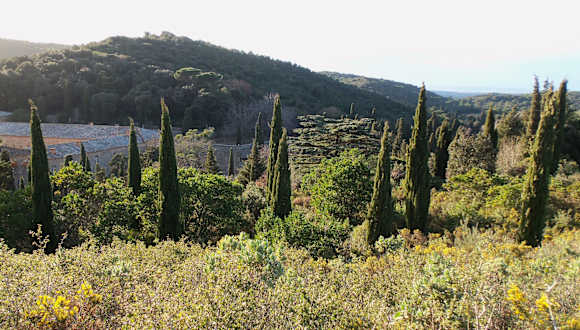 Im Südwesten von Narbonne, am Ende felsigen Tales der Corbières, versteckt sich dieses prächtige Zisterzienser-Ensemble. Die Abtei befindet sich inmitten einer typischen Mittelmeerlandschaft, in der Zypressen, Kiefern und Buchsbäume dominieren. Der Ursprung des Klosters geht auf das Ende des 11.Jh. zurück. Zunächst wurde die Benediktinerregel angenommen. Mitte des 12.Jh. schloss Fontfroide sich dem Orden von Cîteaux an. Die Abtei erhielt bald umfangreiche Ländereien, die sich bis nach Katalonien erstreckten. So gründete Fontfroide ab dem Beginn des 13.Jh. acht Abteien. Während des Kreuzzuges gegen die Albigenser tat sich Fontfroide als Bastion der katholischen Rechtgläubigkeit gegen das Katharertum hervor, das sie mit Nachdruck bekämpfte. Zwei Mönche aus Fontfroide zeichneten sich besonders aus: Pierre de Castelnau und Raoul Raoul wurden von Innozenz III. zu Legaten ernannt. Zu den berühmten Äbten gehört auch Jacques Fournier, der unter dem Namen Benedikt XII. (1334 – 1342) Papst wurde. Nach einer Phase des Niedergangs fiel Fontfroide von 1476 bis 1746 unter weltliche Verwaltung. Zu dem Zeitpunkt verlor die Abtei den Abttitel und die dazu gehörenden Einnahmequellen. Die Prioren des Klosters führten im 18.Jh. zahlreiche Veränderungen durch, bevor das Ensemble 1791 versteigert wurde. Die während der Französischen Revolution relativ gut erhaltenen Gebäude wurden von 1858 bis 1901 von den Zisterziensern der Unbefleckten Empfängnis belegt. Seit 1908 gehört das Bauwerk derselben Familie, der wir auch die generelle Instandsetzung Fontfroides verdanken. Die ältesten Gebäude (Kirchenschiff und Kapitelsaal) stammen aus dem Ende des 12.Jh. Aber bis zum Vorabend der Französischen Revolution haben die Mönche nicht aufgehört, sie ständig zu verschönern, zu verändern und auszubauen. Trotz der sich überlagernden Baustile ist ein deutlicher Wille zur Einheit und Einheitlichkeit sichtbar. Der Kreuzgang dessen einer Flügel an die Abteikirche grenzt, ist der Mittelpunkt. Seine Funktion ist es, die wichtigen Teile des Bauwerks zu verbinden. Der vom Turm der Abteikirche beherrschte Kreuzgang wurde in zwei Abschnitten gebaut. Aber das tut der Harmonie, die er ausstrahlt, keinen Abbruch. Das Kreuzrippengewölbe der Gänge endet auf Kragsteinen oder Kapitellen mit Blattwerk. Zu jeder Jahreszeit erfreut Sie der des Kreuzganges durch seine reichen Farben. Die Abteikirche wurde, wie üblich, auf dem höchsten Punkt des Klosters errichtet. Sie entspricht dem traditionellen Grundriss in Form eines lateinischen Kreuzes. In dem in fünf Joche aufgeteilten Kirchenschiff erhebt sich das Spitzbogentonnengewölbe in 20 m Höhe. Das südliche Seitenschiff öffnet sich auf fünf Kapellen, die aus der Amtszeit des Abtes Jacques Fournier zu Beginn des 14.Jh. stammen. Als Gustave und Madeleine Fayet Fontfroide erstanden, waren die Kirchenfenster verschwunden. Sie entschieden sich dafür, die Farben sprechen zu lassen und installierten ab 1913 neue Kirchenfenster. Der zwischen 1180 und 1280 gebaute Kapitelsaal verbindet Schlichtheit und Majestät, Macht und Leichtigkeit. Sie können auch den eindrucksvollen Speisesaal, den Vorratskeller, und im 1. Stock den Schlafsaal der Laienbrüder besichtigen. Im 17.Jh. wurde die direkte Umgebung der Abtei durch die Anlage eines an die Gärten grenzenden Ehrenhofes mit monumentalem Eingangstor verschönert. Fontfroide ist berühmt für seinen Rosengarten, den größten im Süden Frankreichs, sowie für seinen « Garten der Düfte » und den sog. Garten « de la Portion Cule », der mit Zypressen, Olivenbäumen und einer Vielzahl von Schwertlilien bepflanzt ist.