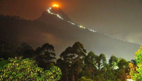 Der im südlichen Hochland Sri Lanka's gelegene 2.243 Meter hohe Adam's Peak (singhalesisch: Sri Pada), der fünfthöchste Berg des Landes, ist einer der heiligen Orte in Sri Lanka. Fast alle Religionen verbinden diesen Gipfel mit unterschiedlichen Legenden. Hier, so besagt es die Geschichte der Christen, setzte Adam nach seiner Vertreibung aus dem Paradies das erste Mal seinen Fuß auf die Erde. Laut buddhistischem Glauben hinterließ Buddha hier seinen Fußabdruck auf dem Weg ins Paradies. Auch die Hinduisten verbinden mit diesem Berg etwas ganz Besonderes: Sie nennen ihn Samanalakande, was so viel heißt wie Schmetterlingsberg, denn, gemäß den Hindus, kommen die Schmetterlinge hierhin um zu sterben. Bei Anbruch der Dunkelheit besteigen zahlreiche Gläubige dieser Religionen den Berg, um dort den Sonnenaufgang zu erleben. Insgesamt etwa 4.500 Stufen muss man beim drei- bis vier-stündigen Aufstieg ab Dalhousie erklimmen. Auf dem Weg nach oben gibt es zur Erholung ein paar Teehäuser. Für die schwierigere Route ab Ratnapura benötigt man etwa sieben Stunden. Beide Strecken sind während der Saison -von Dezember bis Mai- beleuchtet. Homepage: http://sripada.org/