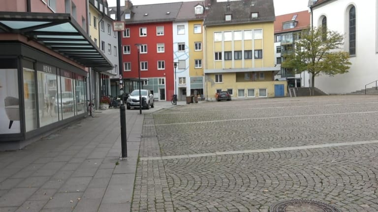 Der Adenauerplatz ist gleichzeitig der Marktplatz in Friedrichshafen. Eingerahmt vom Rathaus und der Kirche ist er der Mittelpunkt der Stadt. Ein schöner Brunnen steht mitten auf dem Platz. Hier findet auch der Wochenmarkt statt.