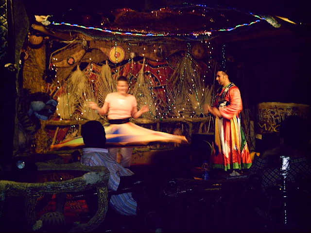 Das Africano ist eine witzige Bar im afrikanischen Stil, nur find ich die verkleideten Kellner etwas übertrieben (und die fühlen sich garantiert auch nicht wohl dabei!). Die arabische Show ist klasse, kostet aber halt extra (ich glaube, pP 20 LE)und das stand nirgendwo (war im Feb., da hatte das Africano erst kürzlich aufgemacht). War dort mit einigen ägyptischen Bekannten, die minutenlang mit dem Besitzer darüber diskutiert haben... Ic hweiß leider nicht, wann die Show immer angeboten wird. Tipp: nicht allzulang im Africano bleiben! Bin damals erst so gegen 3: 00 in der Früh rausgekommen. Es war ziemlich kalt und windig, und ich musste 10min auf das nächste Taxi warten! Man glaubt es kaum, aber in Hurghada war zu dieser Zeit fast kein Verkehr... Zur Show: es trat u. a. ein Derrwisch auf, der nach seiner Show durchs Publikum gegangen ist und vereinzelt Gäste auf die Bühne mitgenommen hat, so dass diese sich auch mal drehen durften. Da an "meinem" Abend nicht viele Touristen anwesend waren, war es klar, dass ich auch mitdrehen durfte... nach 1 min drehen hab ich jetzt noch viel mehr Respekt vorm Derrwisch, dass er das 30min durchhält, ohne dass ihm schlecht wird! Was ich witzigerweise dann noch erlebt habe: 2 Tage später war ich mit Bekannten im Cafe im Zabargad (Einkaufszentrum), wo wiederum eine arabische Show geboten wurde. Mit den gleichen Darstellern wie im Africano. Mit dem gleichen Derrwisch. Der wiederum Leute mit auf die Bühne genommen hat. Und im Zabargad war ich wirklich der einzige Tourist! Daher - meine 2. Runde als Ersatz-Derrwisch, diesmal synchron mit dem Meister himself ;-)