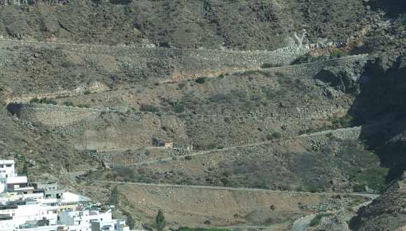 Diese Strecke ist beeindruckend wegen der Ausblicke, leider gibt es zu wenige Möglichkeiten, anzuhalten. Wir befuhren sie aus Richtung San Nicolas de Tolentino nach Agaete. Die Straße ist zunächst gut ausgebaut, hat allerdings teilweise sehr enge Kehren. Richtig eng und manchmal sehr steil wird es erst auf dem letzten Stück vor Agaete. Es ist zu empfehlen, sich sehr weit rechts zu halten, wenn man die Straße nicht überblicken kann. Einheimische, die die Strecke kennen, fahren schneller als erlaubt und schneiden die Kurven, es kann knapp werden, aber die Canarios sind sehr geübt im Ausweichen... Kritisch kann es auch werden, wenn einem ein Bus entgegenkommt. Trotz alledem scheinen recht wenige Unfälle zu passieren. Die Aussichtspunkte sind meist erst spät zu erkennen, schon deswegen sollte man etwas langsamer fahren, sonst ist man vorbeigefahren. Der erste Punkt ist der Mirador de Balcón. Hier steht eine Verkaufsbude und man kann ein Stück hinunterklettern, auf einer schönen, breiten Treppe. Schon bald danach kommt der zweite Aussichtspunkt Andén Verde, der leider nicht als solcher zu erkennen war. Er dient heute scheinbar als Müllabladeplatz. Alle anderen Aussichtspunkte sind nicht gekennzeichnet. Wenn man irgendwo unterwegs etwas länger pausieren will, sollte man Getränke dabei haben, denn außer an der Bude am Balcón gibt es nichts zu kaufen - und die ist entsprechend teuer. ACHTUNG! Die Straße darf bei Regen nicht befahren werden! Sowohl in Agaete als auch in San Nicolas stehen Schilder "en casio de lluvia..." Im Falle von Regen Fahrverbot.