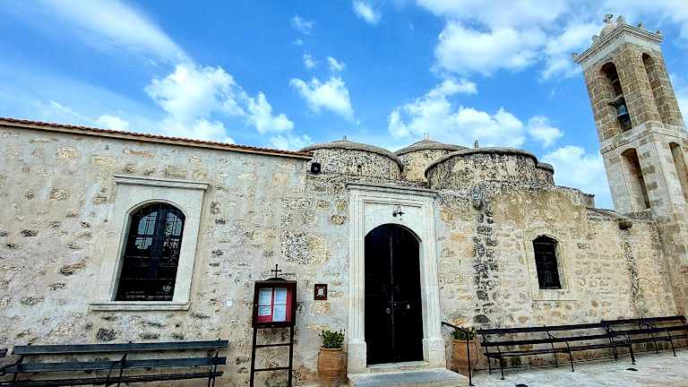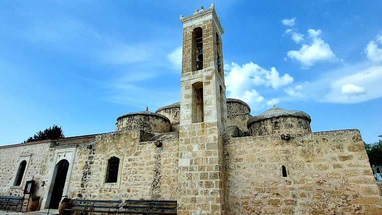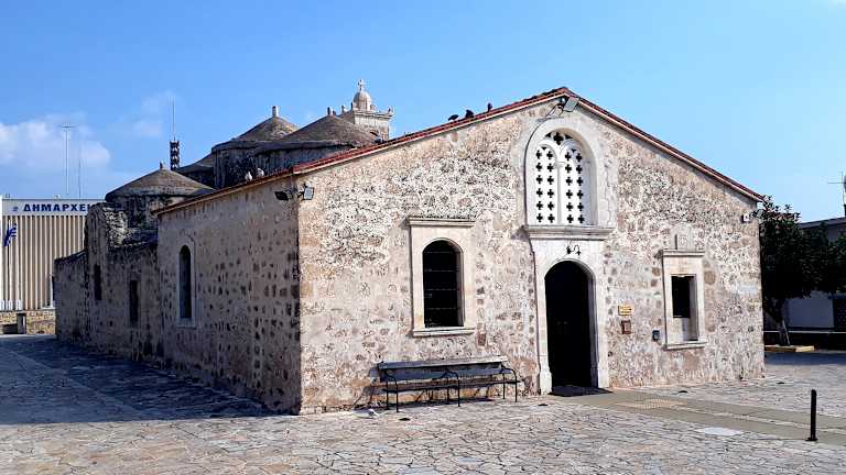 In Geroskipou, in der Nähe von Paphos, liegt die vermutlich im 9. Jahrhundert erbaute kleine Kirche mit ihren 5 Kuppeln. Es ist eine wunderschöne Kirche aus der byzantinischen Zeit mit herrlichen Wandmalereien und Ikonen. Eine Silberikone ist der Heiligen Paraskevi geweiht. Leider ist die Kirche nur selten geöffnet und das Fotografieren im Innenraum verboten. Der Keyholder, so heisst der Aufpasser, hat einen wachen Blick auf die Besucher. Geroskipou ist auch bekannt für seine türkischen Süssigkeiten die im Ort angeboten werden.