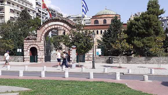 Die Kirche "Agia Sophia (Heilige Weisheit)" steht im Zentrum von Thessaloniki an der Kreuzung der gleichnamigen Straße mit der Ermou Straße. Das Gotteshaus wurde im späten 7. oder frühen 8. Jahrhundert als dreischiffige Basilika auf den Fundamenten einer bei einem Erdbeben zerstörten fünfschiffigen Kirche aus dem 4. Jahrhundert erbaut. Sie hat einen fast quadratischen Grundriss und im mittleren Schiff eine auf vier Säulen ruhende Kuppel mit einem Durchmesser von mehr als 10 Metern. Im frühen Mittelalter diente sie als Kathedrale von Thessaloniki. Von 1523 bis 1912 wurde sie als Moschee genutzt. An der nordwestlichen Ecke steht ein kleiner Turm aus dieser Zeit, der früher vielleicht ein Minarett war. Bei einem Brand wurde das Klerikalgebäude im Jahr 1890 stark beschädigt und zwischen 1907 und 1909 wieder restauriert. Die Eingangshalle wurde im Jahr 1941 bei einem Bombenangriff der italienischen Truppen weitgehend zerstört. Sehenswert sind die Mosaiken und Wandmalereien im Inneren, die aus unterschiedlichen Epochen stammen. "Christi Himmelfahrt" in der Kuppel ist das wichtigste monumentale Fresko des 9. Jahrhunderts. Die Kirche weist einige Ähnlichkeiten mit der Hagia Sofia in Istanbul auf, weshalb vermutet wird, dass die beiden Kirchen zeitgleich unter Justinianus entstanden sind. Im Jahr 1988 wurde das Gotteshaus zusammen mit anderen frühchristlichen und byzantinischen Bauwerken von Thessaloniki in die UNESCO-Weltkulturerbeliste aufgenommen. Homepage: http://www.agiasofia.info/
