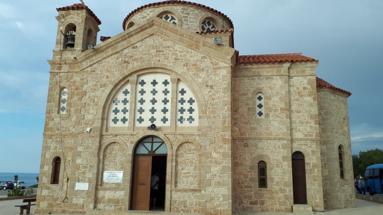 Am Ende der E 701, in Pegeia, am Cape Drepano, steht auch eine Kirche, die dem Heiligen Georgios geweiht wurde. Vom Cape Drepano hat man einen schönen Ausblick auf die Insel Geronisos. Diesen Ausblick konnte auch der damalige Kanzlerkandidat Scharping vor Jahren geniessen. In der Kirche gibt es schöne Ikonen von Heiligen Georg, der den Drachen tötet und eine sehenswerte Altarwand
