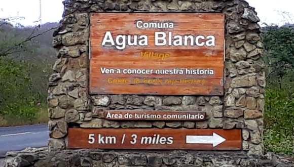 Die "Comunidad Agua Blanca" liegt 12 Kilometer östlich von Puerto López mitten im Machalilla Nationalpark. In der Gemeinde leben z.Zt. 72 indigene Familien mit etwa 300 Personen, die sich mit der Jagd und der Landwirtschaft beschäftigen. Rund um den Ort erstreckt sich das ehemalige Siedlungsgebiet der Monteña-Kultur, einer der ältesten Zivilisationen Südamerikas. Die Ausgrabungen, deren wichtigste Exponate in einem kleinen Museum präsentiert werden, locken Touristen aus dem In- und Ausland an und bescherten den Einwohnern eine zusätzliche Einnahmequelle. Homepage: http://www.comunidadaguablanca.com/
