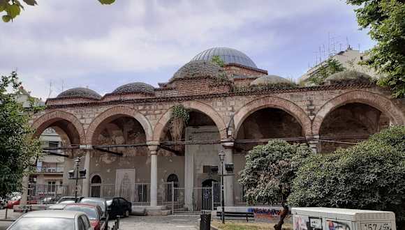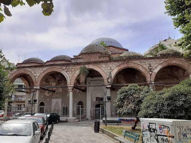 Die 1484 erbaute Moschee liegt ziemlich versteckt an einem kleinen Platz, den man von der Odos Kassandrou aus über einige Stufen erreicht. Der Name bedeutet „Vielfarbigkeit“ - wohl wegen der vielen Kacheln, die in der Moschee verarbeitet worden sind. Das Minarett ist nicht erhalten. Die heute als Veranstaltungsraum genutzte Gebäude ist mit Fresken verziert, die an die byzantinische Ikonographie angelehnt sind.