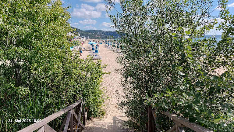 Albena bietet einen wunderschönen Sandstrand. Der schönste Abschnitt befindet sich jenseits der großen Hotelanlagen in Richtung Kranevo. Hier ist auch textilfreies Baden erlaubt. Der Sand ist sehr fein und sehr ruhig - ein schöner Kontrast zum belebten Goldstrand.