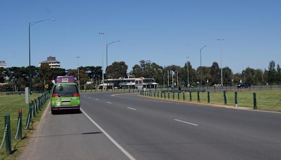 Für mich stand fest den Albert Park/Melbourne in mein Reiseprogramm aufzunehmen,auch Aufgrund der jährlich stattfindenden Formel 1 Rennen,diesen Park einmal persönlich in augenschein zu nehmen.Dank meines deutschsprachigen Navi`s erreichte ich den Albert Park von südwesten kommend ohne größere Probleme. Im Park angekommen parkte ich am Lakeside Drive um mir erst einmal einen Überblick über den Park zu verschaffen,Inmitten des Parkes erstreckt sich ein mittelgroßer See auf dem gesegelt werden kann,In der nähe des Parkplatzes befindet sich ein kleiner Golfplatz,und das schönste an diesem Tag war, die Skyline von Melbourne die sich perfekt in das Gesammtbild einpasste,zumal es noch wolkenlos war. Ganz unscheinbar erstreckt sich die Straße, die im März als Schauplatz des Formel 1 Zikus dient,wenn man es nicht wüßte das hier Rennen ausgetragen werden,man würde es nur auf dem 2.Blick erkennen. Da Straßenbegrenzer und Lichtmasten nichts anderes als eine Straße vermuten lassen. Den nächsten Fotohalt machte ich auf dem Ross Gregory Drive,hier erkannte man die mobilen Poller und die verblasste Kurvenbegrenzung.Weiter ging es auf den Aughtie Drive welcher bei Rennen als Start/Ziel Gerade dient. Ein längeres gebäude ließ vermuten das es sich um die Boxengasse handelte.Die "Boxengasse dient als Parkplatz für die Squashalle die in dem Gebäude untergebracht ist.eine Abtrennung der einzelnen Boxen war nicht zu erkennen.Schon beeindruckend wie das Gebäude so ohne Formel 1 genutzt wird. Auf Höhe der Start/Ziellinie konnte man auch auf die anderen Etagen des Gebäudes gelangen, auf den Stufen die die Sieger hinauf gehen und der Ebene wo sie Ihre Siege vor dem Publikum genießen.Ich genoß es auch hier zu stehen.Traumhaft. Vom Gebäude hat man einen wunderbaren Blick über den gepflegten Park bis hin zur Skyline Melbourne. Den nächsten Halt legte ich an der ersten Kurve der Zilegeraden ein.Wieder schwelgte der Blick über die Gerade,einen angrenzenden Tennisplatz,den Parksee hinüber über den in Palmen eingefassten Blick zur Skyline. Weiter auf dem von Bäumen eingefassten Aughtie Drive ging es auf den Albert Park Drive, welcher eine Sackgasse ist und für Parkplatze dient, bei Rennen aber auf dem Lakeside Drive trifft und somit den Rundkurs perfekt macht.Vom Albert Park Drive hat man einen schönen Blick auf ein,meiner Meinung nach neugebautem Leichtathletikstadion, da es noch sehr neu aussah.Nach diesem großen staunen über die vielfältigen sportlichen Möglichkeiten die man im Park machen kann,verabschiedete ich mich,und setzte meine Reise fort. Fazit: ein Traumhaft schöner Park,mit vielen Sportmöglichkeiten,mehreren Plätzen der Erholung.Ein muß eines jeden Melbournebesuch.Absolut Empfehlenswert.