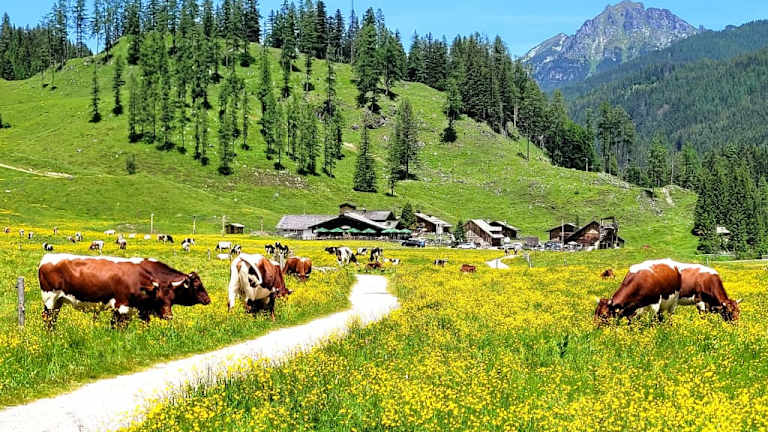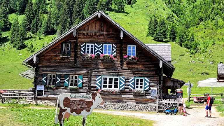 Parkmöglichkeiten für diese Wanderung befinden sich bei der Gnadenalm. Es ist ein Familien-Rundweg mit Namen "Alles Alm" eingebettet im imposanten Panorama der Radstädter Tauern. Ein wirklich wunderschöner Wanderweg durch weitläufige Wiesen und eingezäunte Spielstationen. Bei diesen 8 Stationen erfahren die Wanderer (ob groß oder klein) wissenswertes über das Leben auf der Alm. Ganz wichtig: zahlreiche Almhütten laden zum Verweilen ein ... Noch ein Highlight dieser Wanderung man kann noch den imposanten Johanneswasserfall besuchen - haben wir leider nicht geschafft, war uns zu steil. Uns har diese Wanderung super gut gefallen !!!!!