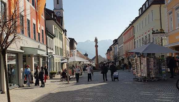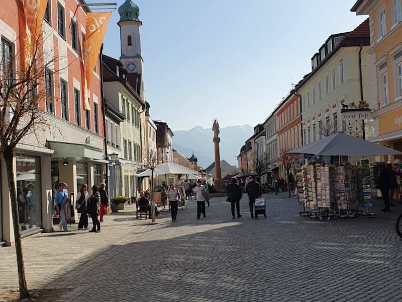In Murnau lässt sich sich schön in der Fußgängerzone mit den bunten Häusern bummeln. Das Rathaus liegt auch dort zentral und es gibt viele Straßencafes oder Restaurants mit Terrasse. Zum See sind es ca. 10 Minuten zu Fuß. Parkplätze sind reichlich vorhanden.