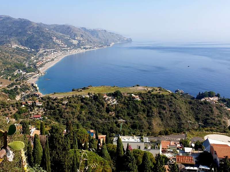 Die Haupattraktion von Taormina sollte man nicht unbedingt mit dem Mietwagen besuchen, denn es ist schwer, einen Parkplatz zu finden. Jedoch hat man bereits vor über 2000 Jahren den besonderen Reiz des Ortes erkannt und hier eines der am schönsten gelegenen griechischen Thaeter errichtet. In der Anlage finden auch heute noch im Sommer Veranstaltungen statt. Von den Zuschauerrängen hat man einen faszinierenden Blick über die Bucht von Giardini-Naxos, etwa 200 Meter tiefer gelegen. Die erhaltenen Teile der Ruine lassen das einstige Ausmass der gesamten Anlage erahnen