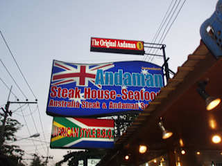 Bei einem unserer abendlichen Rundgänge auf der Chawengstraße wurden wir sehr freundlich durch einen Europäer oder Amerikaner vor dem Andaman angesprochen und zum probieren eingeladen. Uns wurde ein kleines Stück Australisches Rind angeboten, welches sehr schmackaft war. Daraufhin haben wir uns entschieden trotz der im Vergleich eher höheren Preise dort zu essen. Auserdem gab es ein Angebot wo es bei jeden Essen ein Glas Hauswein bzw. ein anderes Getränk kostenlos dazu gab. Bestellt haben wir zwei 300g "Australien Fillet Steack" medium. Dazu gab es Mais, Kartoffeln und etwas Salat. Die Qualität des Fillets war ausgesprochen gut. Weiterhin gibt es andere Steaks (T-Bone etc.) und natürlich sehr viel Seafood. Wir haben für unser Essen inkl. Getränke ca. 1400 THB bezahlt, das sin ungefähr 30, 00 EUR. Den Preis fanden wir für die Qualität der Speisen gerechtfertigt, das ganze hätte in Deutschland sicher um die 50, 00 bis 60, 00 EUR gekostet. Etwas nervig war, dass das Personal immer neben unserem Tisch stand (ca. 1, 5m). Das wurde sicher nur aus Servicegründen gemacht aber das gibt es eben in deutschen Restaurants nicht. Darüber konnten wir aber hinwegsehen. Das Restaurant liegt direkt an der Chawengstraße, ca. 500m rechts vom Hotel Buri Rasa Village.