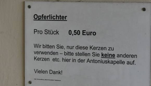 Am Eingang des Weißenhorner Friedhofes steht eine, wenn auch sehr kleine offene katholische Kapelle mit eingezogenem dreiseitigem Schluss. Sie wurde um 1907 erbaut und ist dem heiligen Antonius gewidmet, der in der ganzen Welt bekannt ist, der Verlorenes wiederfindet. Ob es alltägliche Dinge, Dokumente oder auch der Glaube ist. Antonius von Padua, der auch Antonius von Lissabon genannt wird, war ein portugiesischer Ordensbruder des Franziskanerordens aus dem 12. Jh. In der Kapelle befindet sich eine mannshohe Statue des hl. Antonius mit dem Jesuskind auf dem Arm. Gläubige können in zwei kleinen Bankreihen Platz nehmen. Standort: 89264 Weißenhorn Kaiser-Karl-Str. 38