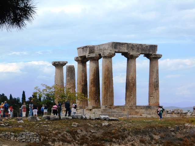 Oberhalb des ehemaligen Marktplatzes („Agora“) zeugen die verbliebenen sieben Säulen des Apollon-Tempels von der Größe und Bedeutung der Stadt Korinth in der Antike. Der dorische Tempel wurde in der Mitte des 6. Jahrhunderts vor Christus errichtet, als Korinth auf der Höhe seiner Macht war. Die verbliebenen Säulen bilden heute das Wahrzeichen der Ausgrabungen der antiken Stadt und empfangen den Besucher direkt am Eingang zur Ausgrabungsstätte.