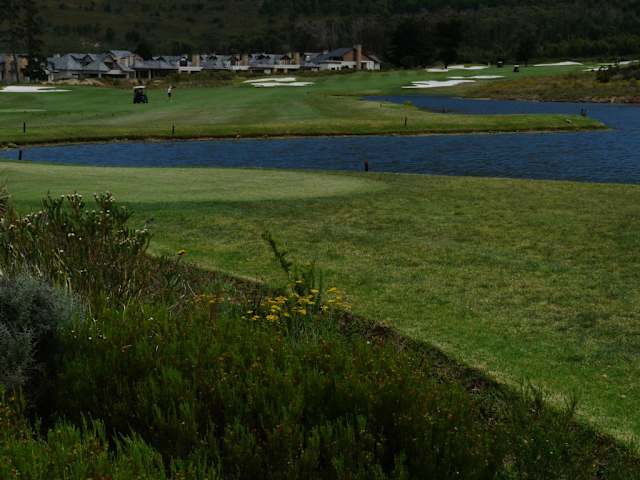 Dieser Resort-Platz mit angegliedertem 5-Sterne-Hotel liegt an der Mündung des Botrivier zwischen Kleinmond und Hermanus, zum Teil tolle Blicke auf die Lagune. Optische Highlights sind die Bahnen 8, 9, 16, 17 + 18. Schwerer Platz, teilweise hügelig. Gehört eindeutig zu den Top Ten in Südafrika. Toller Service, Clubhausterrasse liegt traumhaft schön und ist liebevoll möbliert. Empfehlenswert für samstags, wenn die anderen Plätze Turniertag haben. Anfahrt über die herrliche Küstenstraße R44 empfehlenswert. (625 Rand SA affiliated, ansonsten 825 Rand - Rabatt für Hotelgäste)