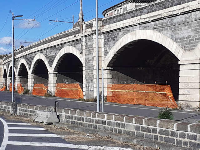 Das Viadukt stammt aus der zweiten Hälfte des 19. Jahrhunderts und wurde für die Eisenbahnstrecke gebaut, die Catania mit Syrakus verbindet. Das Viadukt verbindet den Hauptbahnhof von Catania mit dem Acquicella-Tunnel und wurde in den 1930er Jahren im Zusammenhang mit dem Ausbau des Hafens erweitert, um auch die Hafengleise mit der Eisenbahnstrecke nach Syrakus verbinden. Das markante Bauwerk ist ein guter Orientierungspunkt für Passagiere der Kreuzfahrtschiffe, die regelmäßig hier anlegen. Entlang des Viadukts findet man den Weg zur historischen Altstadt und wieder zurück zum Hafeneingang.