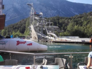 Leider erfuhren wir beim Check-in, dass eine gebuchte Aktitivät Mangels Teilnehmerzahl nicht stattfinden konnte. Da die ganzen Aktivitäten an diesem Wochenende bereits ausgebucht waren, war es sehr schwierig einen Ersatz zu finden. Der junge Herr an der Rezeption bemühte sich sehr um eine Lösung, so konnte umgebucht werden. Wirklich top Personal! Fände es jedoch besser, wenn man vorab Bescheid geben könnte, das eine Aktivität nicht zustande kommt. Das Zimmer war eher einfach gehalten, kein Fernseher (wobei der bei Schönwetter nicht benötigt wird), kein Telefon und auch leider kein Fön. Das Essen ist gut, jedoch nichts besonderes und etwas zu teuer für meinen Geschmack. Bis 10:00 Uhr gab es ein durchaus ausreichendes Frühstück mit Müsli, Obst, Gemüse, Wurst, Käse, etc Die WaterArea war am Samstag leider extrem voll, dadurch kam es zu längeren Wartezeiten beim Blobb und bei div. Rutschen, der Schwimmbereich ist ein wenig klein gehalten. Die gebuchten Touren waren Top, das Rafting war echt lustig und das kalte Wasser nahm man durch den dicken Neopren gar nicht so wahr. Hatten einen echt netten Guide. Die Aussicht vom Flying Fox war echt toll, wobei der Aufstieg auf die Plattform mehr Mut erforderte als der Flying Fox selbst. Ich würde die Area47 weiterempfehlen, wobei eine Reise unter der Woche ratsamer ist. Die Touren sollten auch früh genug gebucht werden und das Essen würde ich außerhalb des Areals empfehlen.