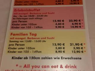 Wir haben uns spontan entschlossen mittags mal essen zu gehen. Hier gibt es jeden Mittag auch Buffet, zu verschiedenen Preisen. Montag - Mittwoch 7,90€ (ohne Getränke) und 13,90€ (inkl. Getränke Buffet) Donnerstag - Samstag 10,90€ (ohne Getränke) und 16,50€ (inkl. Getränke Buffet). Wir haben uns entschieden mit Getränke Buffet (Kaffee, Tee, Softdrinks, Bier, Wein ect.). Es lohnt sich, wenn man auf jedenfall 2 Getränke trinkt. Das Buffet ist jetzt a bissl anders aufgebaut zu früher, aber besser. Auf der rechten Seite befindet sich jetzt das ganze Dessert Buffet und das Getränkebuffet. Was man nicht am Getränke Buffet findet (z.B. Jasmin Tee ect. bringen die Kellner an den Tisch, was dann auch inklusive ist). Am linken Buffet sind Salate, Sushi und Grill Sachen. Am mittleren Buffet ist dann alles andere wie: Suppen, Vorspeisen, Reis, Nudeln ect. Das Essen war sehr lecker, aber manchmal auch ein bissl lauwarm, aber war nicht schlimm für uns. Das Personal war sehr freundlich und hilfsbereit wenn man mal fragen hatte. Parken kann man in der Tiefgarage oder gegenüber beim Real.