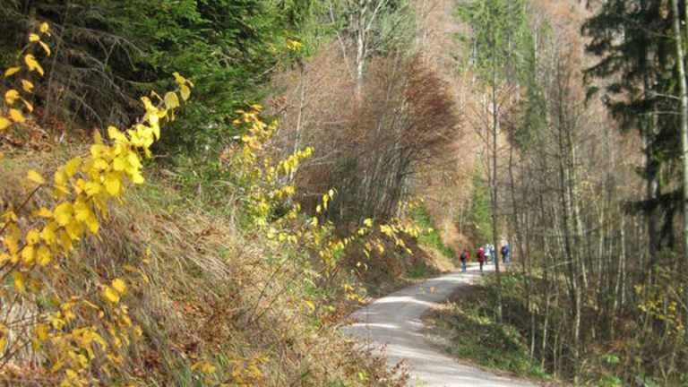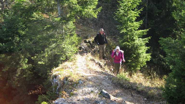 Der Ausgangspunkt unserer Wanderung von Fischhausen – Aurachköpferl – Schliersee war der Bahnhof von Fischhausen-Neuhaus. Die Ortschaften Fischhausen und Neuhaus gehören zur politischen Marktgemeinde Schliersee. Nicht weit vom Bahnhof entfernt befindet sich unser Wanderweg, ein gut ausgeschilderter Forstweg nach Schliersee. Für den Schlierseer Berg gibt es laut Wegweiser, Reiseführer bzw. Internet folgende Schreibweisen: Aurachköpferl, Aurachköpfel, Auracher Köpfl, Auracherköpfl, Auracher Köpferl. Da am Wegweiser „ Aurachköpferl „ stand, habe ich mich für diesen Schreibnamen entschieden. Der Forstweg ist leicht ansteigend und führt überwiegend durch einen Mischwald. Nach etwa 1 Stunde kommt man zu einer beschilderten Abzweigung auf der linken Seite, mit den zwei Hinweisschildern „ Zum Aurachköpferl“ und „ Für Geübte „. Hier geht es auf einen schmalen und steilen Pfad, der teilweise mit Baumstämmen und Zweigen bedeckt ist, hinauf zum Gipfel. Der Pfad ist gekennzeichnet durch rote Markierungen an den Bäumen und Steinen. Trittsicherheit ist für den Gipfelanstieg unerlässlich. Wir brauchten vom Abzweig bis zum Aurachköpferl (1218 m) etwa 30 Minuten. Auf dem Berggipfel befindet sich eine Gipfelkassette mit einem Gipfelbuch und rechts daneben ist ein hölzernes Kreuz als Gipfelkreuz an einem Baum angenagelt. Auch wenn der Aurachköpferl bewaldet ist, so hatten wir einen schönen Fernblick in das Schlierseer Tal. Zurück zum Forstweg gingen wir einen anderen Pfad. Der Waldpfad ging rechts unterhalb vom Gipfel weg. Dieser Waldsteig war ebenfalls sehr schmal und steil, jedoch etwas kürzer. Trittsicherheit war auch hier unbedingt erforderlich. Wir benötigten für den Abstieg bis zur Forstweg geschätzte 15 Minuten. Nun ging es auf den gut gehbaren Waldweg weiter nach Schliersee (784 m). Gehzeit von dem Abzweig Aurachköpferl nach Schliersee noch geschätzte eine Stunde. Dieser Streckenabschnitt ging teilweise entlang eines Baches und war ziemlich flach. Dass es in den letzten Wochen schon mal geschneit hatte, sah man an einem kleinen Schneefeld am Wegesrand. Fazit: Empfehlenswerte Wanderung in den östlichen Schlierseer Bergen auf gut begehbaren Wald- und Forstwegen. Der mögliche Gipfelanstieg zum Aurachköpferl ist etwas für geübte Bergwanderer, die absolut trittsicher sind. Bei Nässe oder Glätte würde ich vom Gipfelaufstieg abraten. Der bewaldete Aurachköpferl ist nicht gerade bekannt für seine Aussicht, doch dafür geht es hier verhältnismäßig ruhig zu. Wir waren die einzigen Wanderer, die an einen sonnigen Herbsttag im Monat November in der Mittagszeit zwischen 12.00 – 13.00 Uhr auf dem Gipfel des Aurachköpferls waren. Empfehlung: Diese Tour ist besonders ideal für Wanderer die mit der Bayerischen Oberlandbahn ( BOB ) unterwegs sind. Man fährt mit der BOB von München nach Fischhausen-Neuhaus und nach Beendigung der Wandertour zurück von Schliersee nach München.
