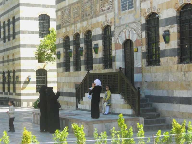 Der Azem Palast befindet sich im Herzen der Altstadt von Damaskus, südlich der Omaijaden-Moschee. Das damaszener Haus mit schlichter Fassade aus Schichten schwarzen Basalts und weißen Kalksteins und prunkvoller Innenausstattung wurde 1749 fertiggestellt. Erbaut wurde der Palast für den Gouverneur von Damaskus. Heute befindet sich in dem Gebäude das Museum für Volkskunst und Traditionen. Vom großen Haupt-Innenhof mit Springbrunnen und Garten sind die verschiedenen Räume zugänglich (Empfangs-, Harems-, Bade-, Musikräume), die mit alten Möbeln, Geräten, Werkzeugen, Instrumenten, Trachtenpuppen, mit farbigem Mamor verzierten Wänden über Türen und Fenstern, bunten, geschnitzten Decken und schweren Brokatstoffen ausgestattet sind. In einem Nebentrakt befinden sich die Wirtschaftsräume. Der Azem Palast bietet einen interessanten Einblick in das Leben der Türken-Zeit und ist eine Oase der Ruhe und Entspannung.