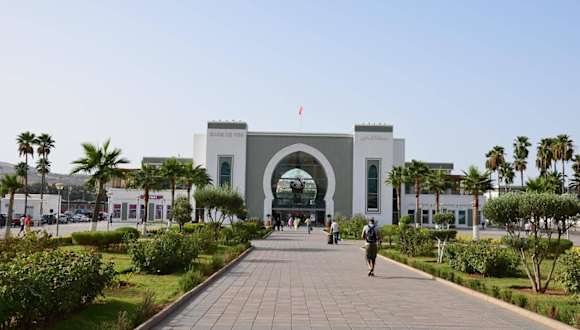 Der Hauptbahnhof von Fès befindet sich im Nordwesten der Neustadt. Nach einer umfassenden Renovierung und Modernisierung wurde das Bahnhofsgebäude am 27.11.2009 wiedereröffnet. Den Reisenden steht eine 7.500 Quadratmeter große Bahnhofshalle mit 900 Quadratmetern Gewerbeflächen zur Verfügung. Es gibt derzeit 100 Parkplätze. Ab dem Bahnhof bestehen Zugverbindungen nach Meknes, Rabat, Marrakesch, Casablanca, Tanger und vielen weiteren Orten. Homepage der marokkanischen Eisenbahn : http://www.oncf.ma