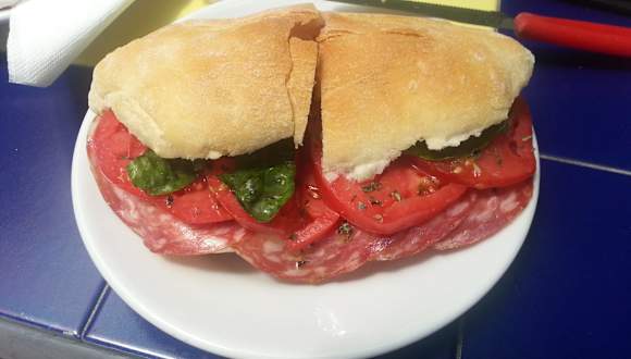 Auch während unserem 2. Urlaub in Sant Agata waren wir wieder in der Bar Orlando. Vor 3 Jahren bekamen wir vom Chef den Hoteltipp, den wir dieses Jahr umgesetzt haben. Wir wurden wieder freundlich begrüßt, der Aussenbereich war wie immer gut besucht. Es ist der Treffpunkt für viele Einheimische. Im hinteren Bereich wird oft Karten gespielt. Als wir mit 6 Personen dort waren, wurden verschiedene Platten mit Salaten gereicht, die ein buntes Bild auf der Tafel ergaben. Es war alles sehr lecker und zu einem fairen Preis. Am letten Tag waren wir nochmal zu Zweit dort, empfohlen wurde uns das Cibatta mit Schinken und auch alternativ mit Thunfisch. Dazu gab es eine kleine Schale frische Kirschen. Hier stimmt der Preis und der Service.