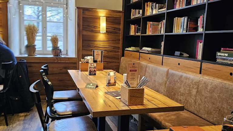 Uriges Lokal nicht nur zum Essen. Theke mit Barhockern und kleinen Nischen zum gemütlichen Sitzen. Bedienungen freundlich und schnell.
