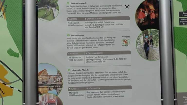 Der Barfußpfad von Hallwangen ist ein beliebtes Ausflugsziel. Auf 2,4 km kann man auf einer Rundstrecke, ab Mai, auf Wiesen, Waldwegen, über Materialstrecken mit Sand und Kies, den Pfad genießen. Es gibt viele Informationstafeln und am Ende Schließfächer für Schuhe und eine komfortable Fußwaschanlage. Ein großer Parkplatz und ein Imbiss sind auch vorhanden. Adresse: Am Sonnenrain 7, 72280 Dornstetten Geodaten: FGR2+V2 Dornstetten