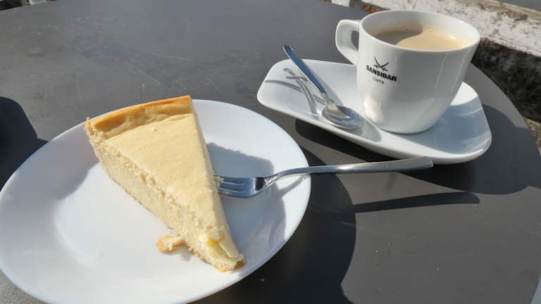 An einem schönen Vorfrühlingstag waren wir mal wieder am Schweinfurter Baggersee. Nach einer Umrundung des Sees legten wir beim Selbstbedienungscafé „Beach Cafe am Baggersee“ unsere Kaffeepause ein. Wir saßen schön im Freien auf der Terrasse und genossen den Kaffee, den Käsekuchen, die Sonne und den Blick auf den See.