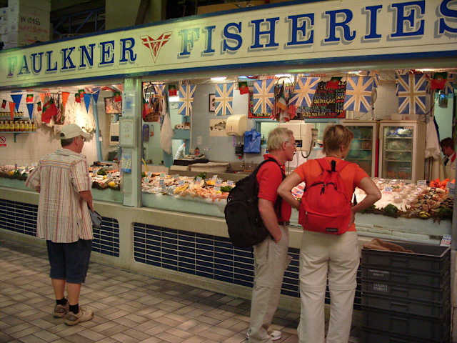 Markthallen, wenn vorhanden, sind im Urlaub immer ein "Muss". Die Fischhalle ist eine kleine Markthalle mit umfangreichen Angebot. Fisch in allen Variationen kann man dort bewundern und natürlich auch kaufen. Es wird auch schon gegarter Fisch angeboten. Ein Stand, an dem Anglerzubehör angeboten wird, ist dor vorhanden. Ein Bistrorestaurant bietet Köstlichkeiten an. Man sollte jedoch frühzeitig kommen. Die Halle ist zwar bis 17.30 Uhr geöffnet, aber wenn man um 16.30 Uhr kommt, wird schon geputzt und aufgeräumt. Es gibt dann kaum noch etwas zu kaufen.